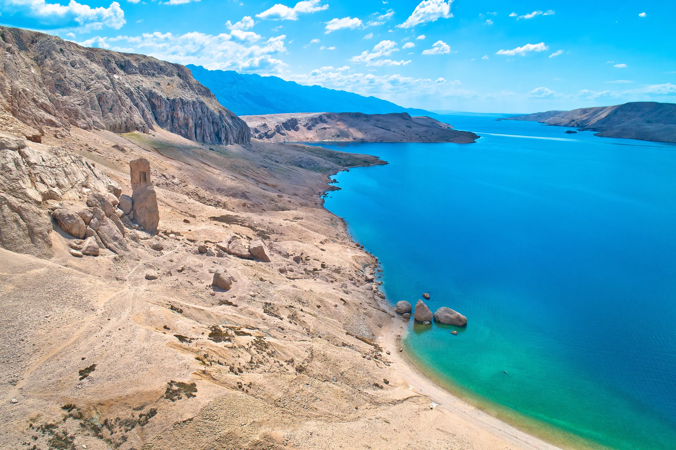 The island of Pag itself is oblong in shape, and from one end to the other it takes more than 1 hour by car. The specificity of the island is that it offers numerous natural beauties of completely different vegetation, surroundings and types of beaches, as if you are not on the same island.